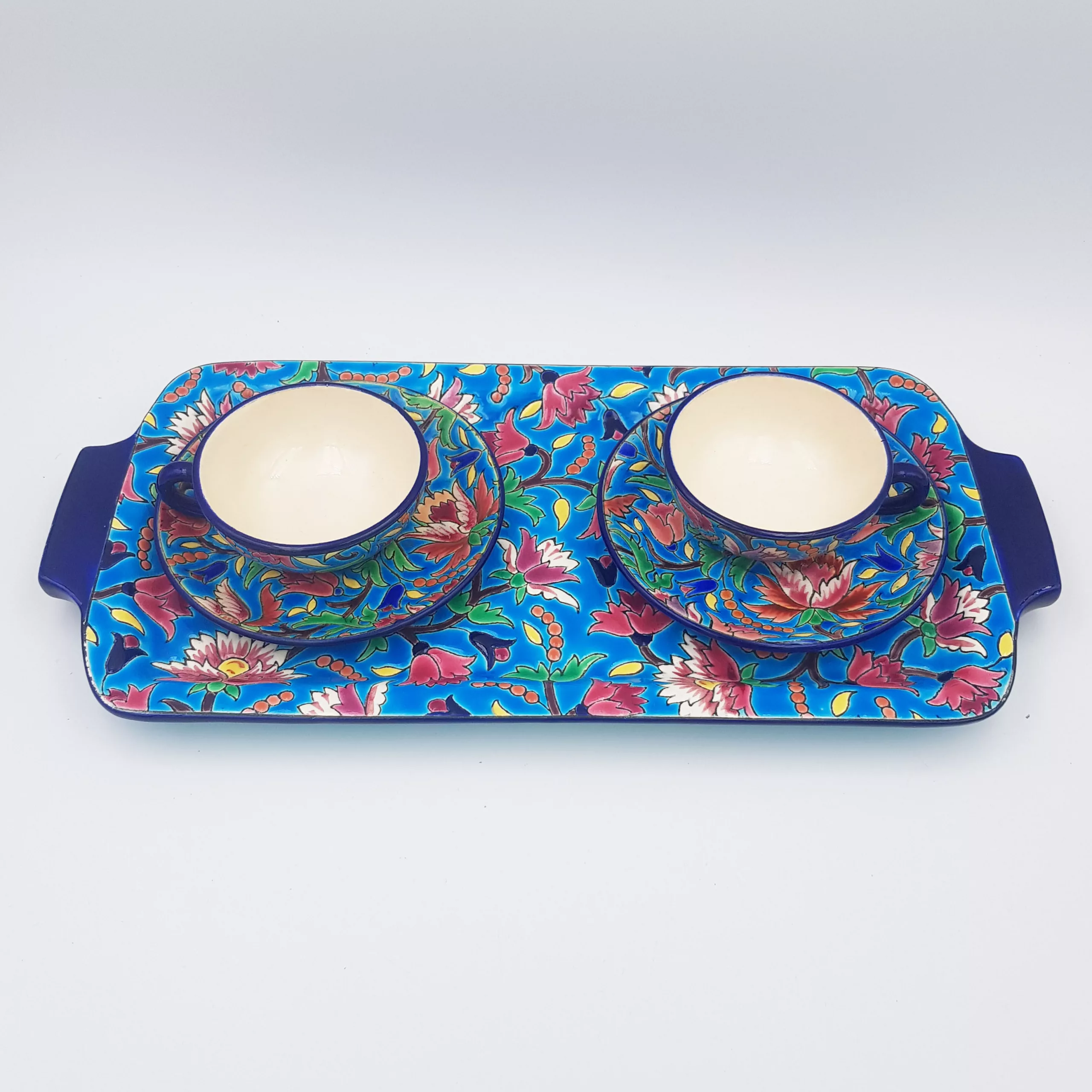 In very good condition, no chip or crack whatsoever. Colors very well preserved. Tiny scratches to the tray’s corners.