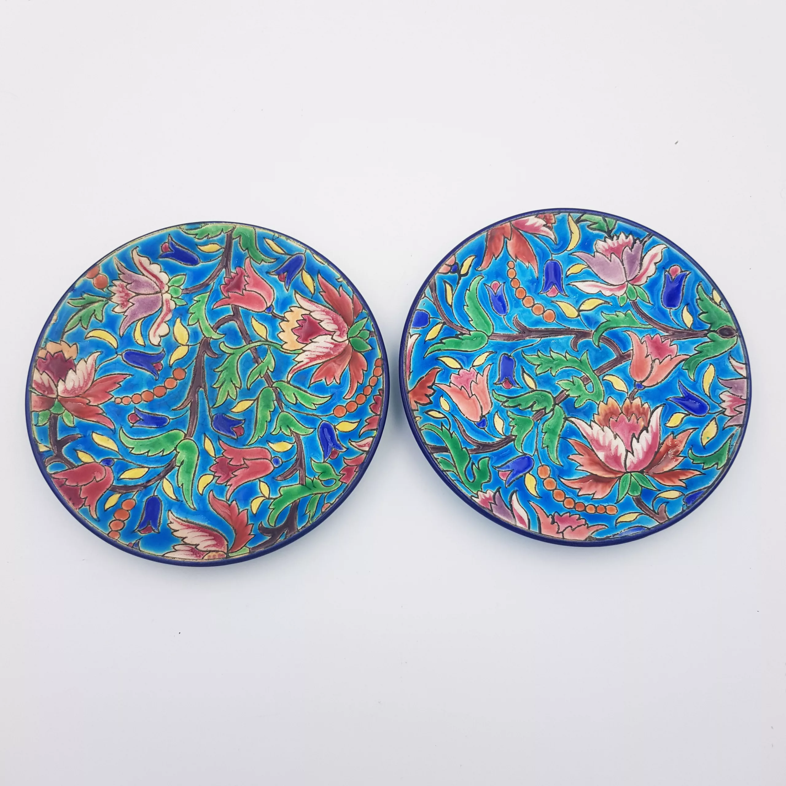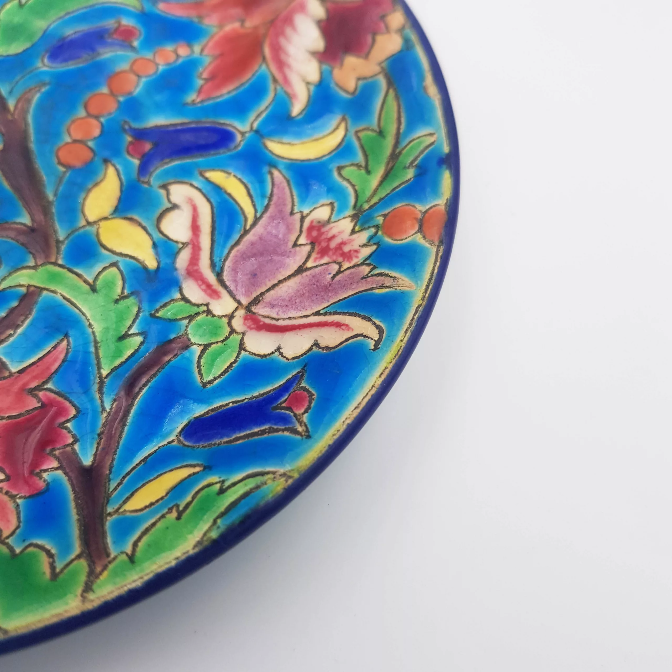 Earthenware. One of the typical floral designs of the manufacture, on a blue background.