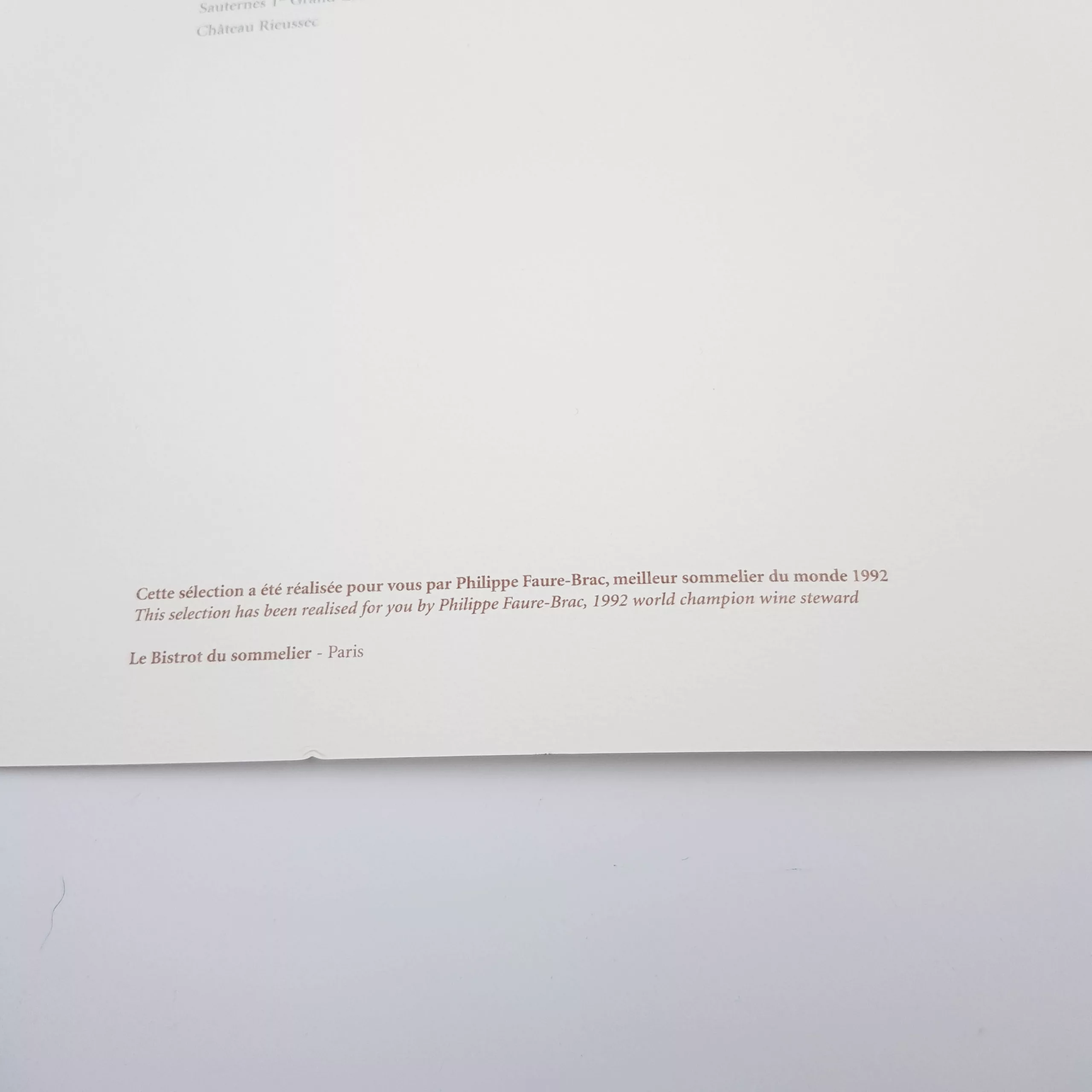 Air France Concorde Menu Paris / New-York 2001-2003