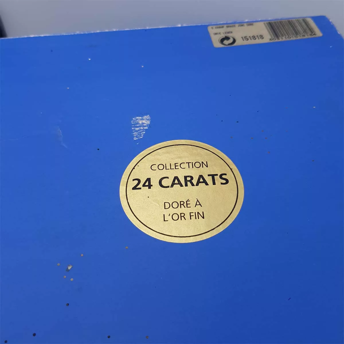 Vintage product that has already been used. Still in excellent condition, no bump whatsoever to the steel. There are tiny scratches from use, most of them will be invisible. One larger 5cm vertical scratch on one side (I tried to capture it in the last picture but it’s very difficult due to the extreme brightness & curved shape). Scratches / stains inside. Original box in good condition.